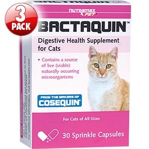 Buy 3-PACK Bactaquin Digestive Health Supplement for Cats - 90 Sprinkle Capsules at a Great Price.