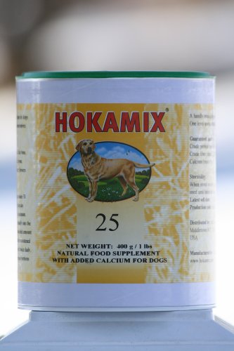 Breeders, Trainers and Veterinarians throughout the world have known the power of HOKAMIX for over 20 years. Sold in over a dozen countries, it is the #1 HERBAL PET SUPPLEMENT IN THE WORLD! Your dogs will look, feel, and perform their best with this unique, ALL NATURAL herbal blend. HOKAMIX contains balanced vitamins, antioxidants, minerals, enzymes, amino acids, chlorophyll, trace elements, essential fatty acids and other nutrients found naturally in Dandelion, two different species of Kelp, Alfalfa, Cayenne, Sage and other beneficial herbs. Wild animals are not plagued by the diseases that plague our domesticated pets. Wild carnivores including dogs, whose prey are usually herbivores; instinctively consume the intestines and their contents first, before consuming the remainder of the animal. This proves conclusively that the botanical contents of the prey s intestines are a nutritional necessity for good health and that domesticated carnivores need an additional supply of plants and plant extracts to satisfy all their nutritional requirements and reach their full health potential. However, our pets are confined and they rely on us to put those plants and plant extracts into their diet. The herbs in Hokamix help create a situation within the stomach in which the flora is better able to recreate itself. It helps the body neutralize the toxins which may have entered the body s system after eating or drinking food or water containing chemicals. Research shows that many diseases are the result of metabolic imbalances and deficiencies. Hokamix can help with these problems by detoxification and providing missing nutritional properties found in plants. Hokamix 30 is now designated for the USA as Hokamix 25. FDA required this change on the label for identification when importing the product into the USA. The product insert inside the canister/bottle still say's Hokamix 30. The formula is exactly the same as before and has not changed at all!!!!.